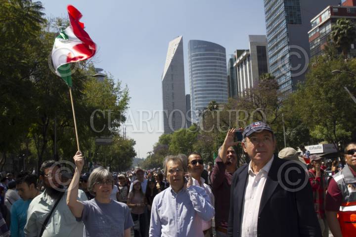 CIUDAD DE MÉXICO, 12FEBRERO2017.- Miles de personas se manifestaron en la marcha "Vibra México" que partió del Auditorio Nacional al Ángel de la Independencia, los participantes rechazaron las políticas antimigrantes del presidente norteamericano Donald Trump y su dichos xenófobos contras los connacionales que viven en la nación de las barras y las estrellas. Al llegar a la glorieta cantaron el himno nacional. También se observaron expresiones por las políticas económicas y de relaciones exteriores del presidente mexicano Enrique Peña Nieto. FOTO: MOISÉS PABLO /CUARTOSCURO.COM