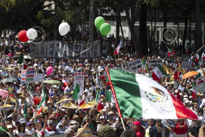 CIUDAD DE MÉXICO, 12FEBRERO2017.- Miles de personas se manifestaron en la marcha "Vibra México" que partió del Auditorio Nacional al Ángel de la Independencia, los participantes rechazaron las políticas antimigrantes del presidente norteamericano Donald Trump y su dichos xenófobos contras los connacionales que viven en la nación de las barras y las estrellas. Al llegar a la glorieta cantaron el himno nacional. También se observaron expresiones por las políticas económicas y de relaciones exteriores del presidente mexicano Enrique Peña Nieto. FOTO: MOISÉS PABLO /CUARTOSCURO.COM