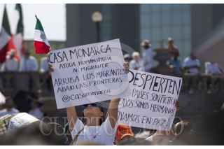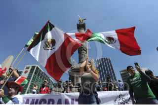 CIUDAD DE MÉXICO, 12FEBRERO2017.- Miles de personas participaron en las marchas convocadas por la UNAM, así como diversas organizaciones sociales, “Vibra México” y “Mexicanos Unidos”. Los contingentes marcharon del Auditorio Nacional y del Hemiciclo a Juárez, respectivamente, para congregarse en el Ángel de la Independencia, donde contaron el himno nacional. Dichas marchas se realizaron con motivo de las políticas antimigrantes del presidente Donald Trump. FOTO: ARMANDO MONROY /CUARTOSCURO.COM