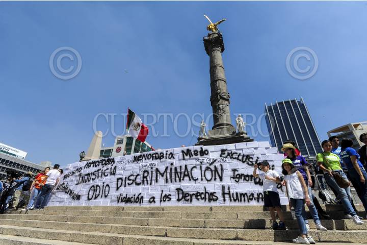 CIUDAD DE MÉXICO, 12FEBRERO2017.- Miles de personas participaron en las marchas convocadas por la UNAM, así como diversas organizaciones sociales, “Vibra México” y “Mexicanos Unidos”. Los contingentes marcharon del Auditorio Nacional y del Hemiciclo a Juárez, respectivamente, para congregarse en el Ángel de la Independencia, donde contaron el himno nacional. Dichas marchas se realizaron con motivo de las políticas antimigrantes del presidente Donald Trump. FOTO: ARMANDO MONROY /CUARTOSCURO.COM