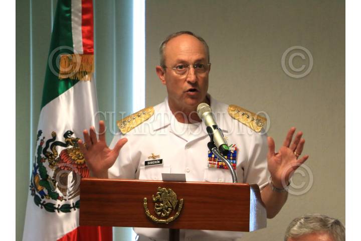 TAMPICO, TAMAULIPAS, 13FEBRERO2017.- Vidal Francisco Soberon Sanz, Secretario de Marina Armada de México, en conferencia de prensa informo del proceso transferencia de la capitanía de puertos de la SCT a la SEMAR, así mismo durante la sesiones de preguntas y respuestas dio detalles de la captura del H2 en Nayarit. FOTO: SAÚL LÓPEZ /CUARTOSCURO.COM