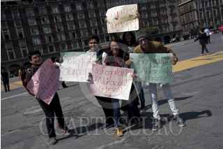 CIUDAD DE MÉXICO, 14FEBRERO2014.- Jóvenes caminan por el Zócalo capitalino con cartulinas donde indican que regalan abrazos y besos a cualquier persona. FOTO: TERCERO DÍAZ /CUARTOSCURO.COM