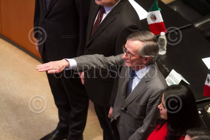 CIUDAD DE MÉXICO, 14FEBRERO2017.- Los senadores priistas Miguel Ángel Chico Herrera y Emilio Gamboa Patrón, observan vinos de Guanajuato, durante la inauguración de la exposición de productos de este estado, en la explanada del Senado de la República. FOTO: MOISÉS PABLO /CUARTOSCURO.COM