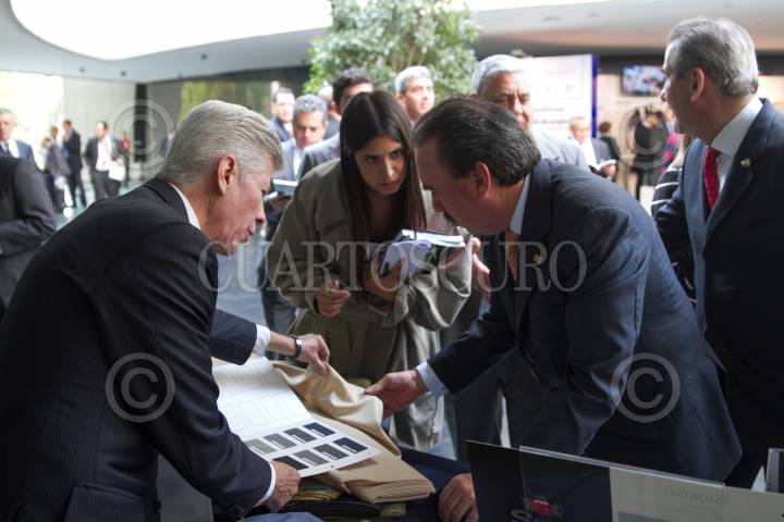 CIUDAD DE MÉXICO, 14FEBRERO2017.- Los senadores priistas Miguel Ángel Chico Herrera y Emilio Gamboa Patrón, observan vinos de Guanajuato, durante la inauguración de la exposición de productos de este estado, en la explanada del Senado de la República. FOTO: MOISÉS PABLO /CUARTOSCURO.COM