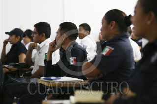 OTHÓN, P. BLNACO, QUINTANA ROO, 14FEBRERO2017.- Los maestros Naiki Saucedo y Geru Aparicio, ambos funcionarios de la Procuraduría General de la República (PGR), capacitan a policias municipales y estatales, durante las “Jornadas sociales itinerantes de los 23 municipios de la frontera sur. FOTO: LUIS MEJÍA /CUARTOSCURO.COM