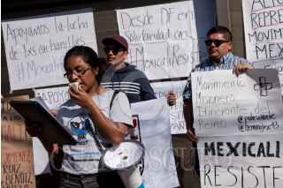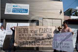 CIUDAD DE MÈXICO, 14FEBRERO2017.- Diversas organizaciones sociales como Jóvenes ante la Emergencia Nacional, Nueva Constituyente Ciudadana y Popular, el Sindicato Mexicano de Electricistas y la Coordinadora Nacional de Trabajadores de la Educación, realizaron una concentración en las instalaciones de la representación del gobierno de Baja California en la capital, para exigir que se retiren los cargos a los integrantes del movimiento Mexicali Resiste, que fueron detenidos el día de ayer, tras un desalojo en el Palacio Municipal de la capital bajacaliforniana. Cabe mencionar que este movimiento se encuentra luchando por derogar la nueva iniciativa de ley que pretende privatizar el agua. FOTO: TERCERO DÍAZ /CUARTOSCURO.COM