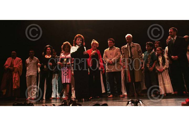 María Victoria recibió un reconocimiento por su trayectoria artística, por parte del elenco de la obra teatral Regina. FOTO: Eunice Adorno/CUARTOSCURO.COM