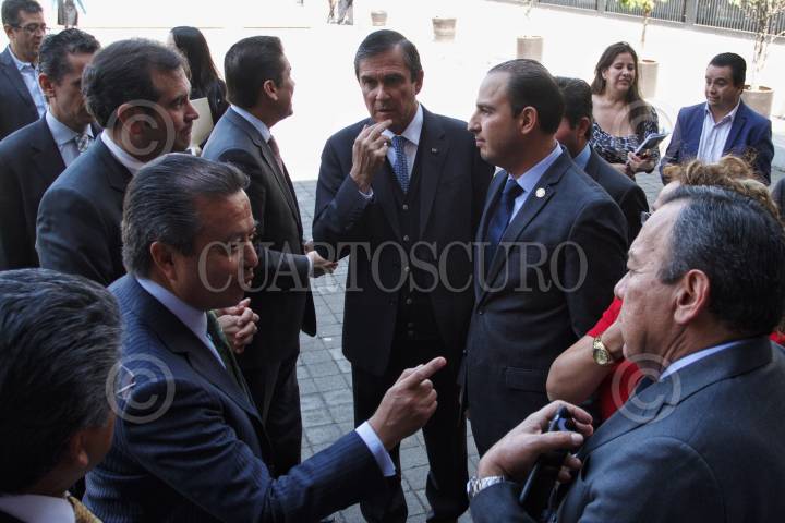 CIUDAD DE MÉXICO, 15FEBRERO2017.- Edmundo Jacobo Molina, secretario del INE, y el diputado César Camacho (PRI), durante el IV Seminario "Homenaje a Don Jesús Reyes Heroles: Tendencias actuales de la democracia en México", realizado en el Instituto Nacional Electoral. FOTO: ISAAC ESQUIVEL /CUARTOSCURO.COM