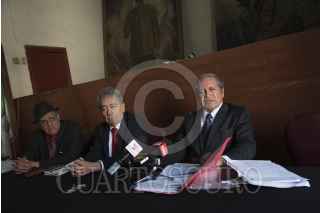 CIUDAD DE MÉXICO, 15FEBRERO2017.- José Puente León, José Luis González y Juan Pablo Badillo Soto, abogados de Joaquín "El Chapo" Guzmán Leora, realizaron una rueda de prensa para denunciar que la extradición del líder del Cartel de Sinaloa ocurró de manera insconstitucional. FOTO: TERCERO DÍAZ /CUARTOSCURO.COM
