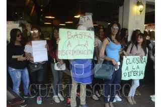 CIUDAD DE MÉXICO, 16FEBRERO2017.- Miembros de la comunidad LGBTTTI clausuraron simbólicamente una pizzería, en la calle progreso casi esquina con Nuevo León colonia Escandón, debido a actos de transfobia efectuados por sus empleados. Durante el bloqueo estuvo presente Diana Sánchez Barrios, activista transgénero. FOTO: ARMANDO MONROY /CUARTOCURO.COM