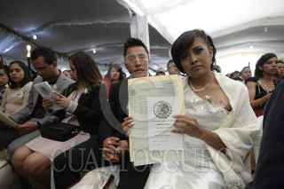 TOLUCA, ESTADO DE MÉXICO, 16FEBRERO2016.- 230 parejas contrajeron matrimonio por el Civil como parte del programa Matrimonios con Valor, organizado por el ayuntamiento de Toluca y el Gobierno del Estado de México. FOTO: ARTEMIO GUERRA BAZ / CUARTOSCURO.COM