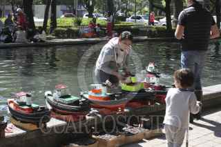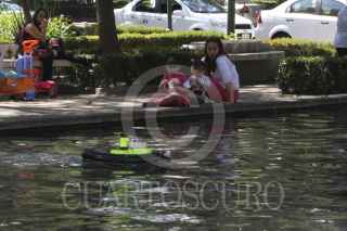 CIUDAD DE MÉXICO, 18FEBRERO2017.- Adultos y niños se divierten jugando con barcos de control remoto, que son rentados en una de las fuentes del parque Lincoln en Polanco. FOTO: ANTONIO CRUZ /CUARTOSCURO.COM