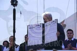 TLAXCALA, TLAXCALA, 18FEBRERO2017.- Andrés Manuel López Obrador firmó con ciudadanos de Tlaxcala, el Acuerdo Político de Unidad por la Prosperidad del Pueblo y Renacimiento de México. “2018 La Salida. Decadencia y Renacimiento de México”. A este acto que reunió alrededor de dos mil gentes acudieron los ex gobernadores Alfonso Sánchez Anaya, José Antonio Álvarez Lima, diputados locales, alcaldes, el ex panista Sergio González Hernández, las senadoras Martha Palafox Gutiérrez y Lorena Cuéllar. FOTO: JORGE LEZAMA /CUARTOSCURO.COM