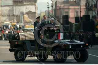 El presidente Vicente Fox, Clemente Vega, de la Defensa Nacional, Marco Antonio Peyrot, de Marina al inició del desfile militar conmemorativo de la Independencia en la Plaza de la Constitución. FOTO: Nelly Salas/CUARTOSCURO.COM