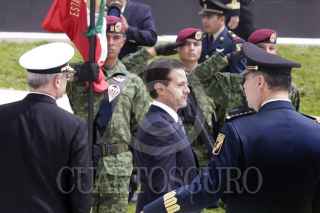 PUEBLA, PUEBLA; 19FEBRERO2017.- El presidente de la república Enrique Peña Nieto; acompañado por el general de la defensa nacional Salvador Cienfuegos, encabezó la ceremonia de entrega de la Escuela Militar de Sargentos y la remodelación del Hospital Militar Regional de la XXV Zona Militar en Puebla, en el marco del día del ejército mexicano. FOTO: HILDA RÍOS /CUARTOSCURO.COM