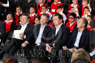 CIUDAD DE MÉXICO, 20FEBRERO2017.- Aurelio Nuño, secretario de Educación Pública, y Miguel Ángel Osorio Chong, secretario de Gobernación, durante la Firma del Plan de Acción para la Prevención Social de la Violencia y la Convivencia Escolar, que se llevó a cabo en la escuela Primaria Benito Juárez. FOTO: SEP /CUARTOSCURO.COM
