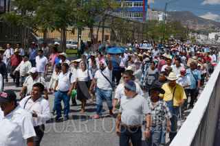 CHILPANCINGO, GUERRERO, 20FEBERO2017.-Pobladores de Copalillo, Huitzuco y Atenango del Río marcharon de la Universidad Policial Estado (UNIPOL), ubicada en el bulevar Vicente Guerrero, con dirección al Palacio de Gobierno, para exigir inversión en obras públicas. La marcha fue encabezada por el presidente municipal petista de Copalillo, Getulio Ramírez Chino. FOTO: JOSÉ I. HERNÁNDEZ /CUARTOSCURO.COM
