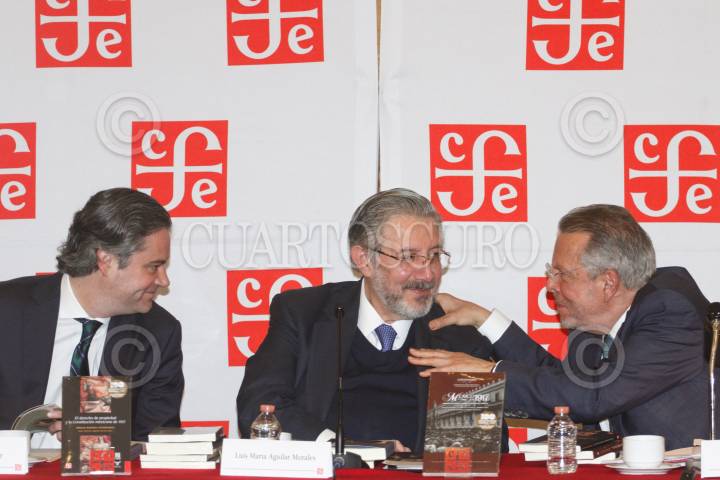CIUDAD DE MÉXICO, 21FEBRERO2017.- Aurelio Nuño, secretario de Educación, el ministro Luis María Aguilar, y José Carreño, titular del FCE, durante el Conversatorio "17 para el 17, Constitución y constitucionalismo a debate", en el Fondo de Cultura Económica. FOTO: ISAAC ESQUIVEL /CUARTOSCURO.COM