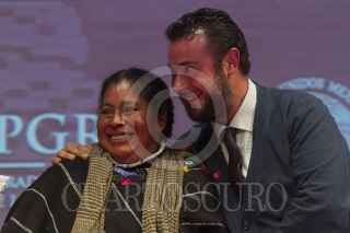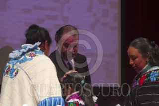 CIUDAD DE MÉXICO, 21FEBRERO2017.- Raúl Cervántes Andrade, Procurador General de Justicia, saluda a Teresa González, una de las tres mujeres que recibieron una disculpa pública por parte del Estado Mexicano, luego de ser encarceladas tres años por el presunto secuestro de seis agentes federales de la desaparecida Agencia Federal de Investigación. Los hechos ocurrieron el 26 de marzo de 2006 cuando agentes acudieron a un operativo al tianguis de Santiago Mexquititlán, Querétaro, a realizar un operativo contra la venta de piratería. El acto protocolario se realizó en el Museo de Antropología. FOTO: MOISÉS PABLO /CUARTOSCURO.COM
