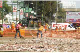 CIUDAD DE MÉXICO, 21FEBRERO2017.- Trabajadores de la delegación Cuauhtémoc con apoyo de los granaderos de la Secretaría de Seguridad Pública retiraron puestos semifijos y loza que era utilizada por comerciantes de las banquetas en la avenida Eje 1 Norte y Reforma. FOTO: ARMANDO MONROY /CUARTOSCURO.COM