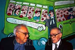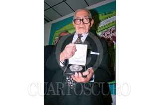 En la galeria Francisco Días de León, se rindió un homenaje a Gabriel Vargas, el creador de la familia Burrón. El Seminario de Mexicano de cultura le entregó la medalla José Vasconcelos, a la ceremonia asistió como invitado Carlos Monsivais. FOTO: Moisés Pablo/CUARTOSCURO.COM