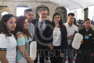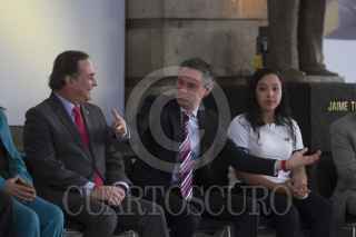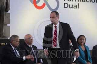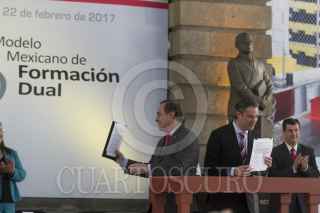 CIUDAD DE MÉXICO, 22FEBRERO2017.- Aurelio Nuño Mayer, secretario de Educación Pública, durante la firma del modelo mexicano de Formación Dual, entre la SEP y las cámara de comercio del país. En la imagen el secretario se tomo la foto con estudiantes beneficiarios de este modelo. FOTO: MOISÉS PABLO /CUARTOSCURO.COM