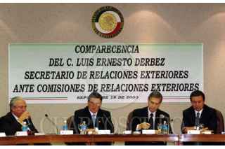 Luis Ernesto Derbez, secretario de Relaciones Exteriores compareció ante senadores integrantes de comisiones de Relaciones Exteriores. FOTO: Nelly Salas/CUARTOSCURO.COM