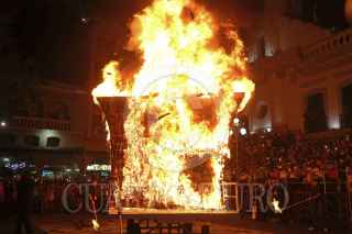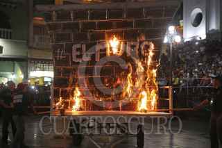 VERACRUZ, VERACRUZ, 22FEBRERO17.- El muro que pretende construir el actual presidente de los Estados Unidos, Donald Trump, fue el símbolo que ardió en la tradicional "Quema del mal humor", celebrada en el Zócalo de la ciudad, y que da inicio a las celebraciones del Carnaval de Veracruz. FOTO: ILSE HUESCA/CUARTOSCURO.COM