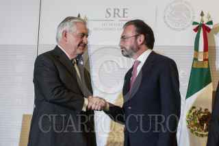 CIUDAD DE MÉXICO, 23FEBRERO2017.- Rex Tillerson, secretario de Estado de Estados Unidos, y el canciller Luis Videgaray, ofrecieron una mensaje, luego de haber sostenido una reunión en la Secretaría de Relaciones Exteriores. FOTO: ISAAC ESQUIVEL /CUARTOSCURO.COM