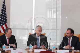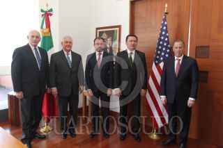 CIUDAD DE MÉXICO, 23FEBRERO2017.- El día de hoy los equipos de trabajo de los gobiernos de México y Estados Unidos sostuvieron una reunión de Alto Nivel en la Secretaria de Relaciones Exteriores, para revisar temas de la relación bilateral, con el propósito de dar seguimiento a lo acordado por los Presidentes Enrique Peña Nieto y Donald Trump, en su última conversación telefónica, celebrada el 27 de enero pasado. La delegación de México fue encabezada por el Secretario de Relaciones Exteriores, Luis Videgaray Caso, con la participación de los Secretarios de Gobernación, Miguel Ángel Osorio Chong y de Hacienda y Crédito Público, José Antonio Meade Kuribreña. A su vez, la delegación estadounidense fue encabezada por el Secretario de Estado, Rex Tillerson, participando también el Secretario de Seguridad Interna, John Kelly y la Embajadora en México, Roberta Jacobson. FOTO: SRE /CUARTOSCURO.COM