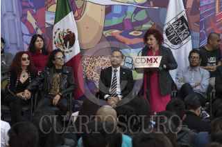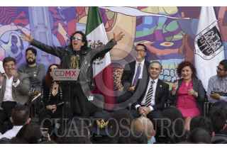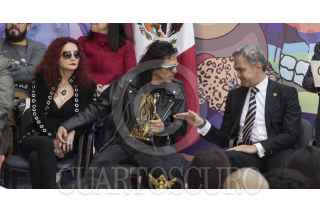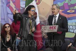CIUDAD DE MÉXICO, 24FEBRERO2017.- El cantante Alex Lora y Miguel Ángel Mancera Espinosa, Jefe de Gobierno de la Ciudad de México, presidieron la develación del mural Evolución del Programa Lienzo CDMX y el lanzamiento de la Convocatoria Lienzo Alex Lora. FOTO: TERCERO DÍAZ /CUARTOSCURO.COM