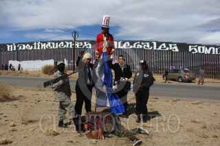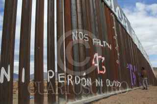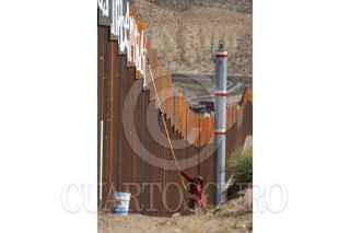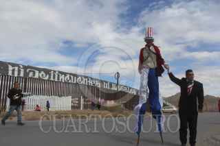 CIUDAD JUÁREZ, CHIHUAHUA, 26FEBRERO2017.- Varias organizaciones no gubernamentales hicieron una pinta en el muro fronterizo que divide a México y Estados Unidos, a la altura de la colonia Rancho Anapra, con el lema "Ni delincuentes, ni ilegales, somos trabajadores internacionales". Con esta pinta mostraron su repudio contra Donald Trump y comentaron que la mayoría de los inmigrantes que radican en la nación estadounidense son personas trabajadoras, quienes realizan trabajos del campo y sectores que muchas veces los nacidos en aquellas tierras no les interesa realizar. FOTO: NACHO RUIZ /CUARTOSCURO.COM