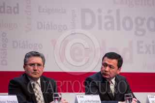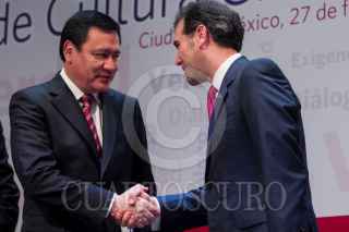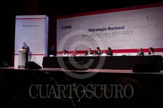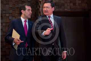 CIUDAD DE MÉXICO, 27FEBRERO2017.- Luis Raúl González Pérez, Ombudsman Nacional, y Lorenzo Córdova, consejero presidente del Instituto Nacional Electoral (INE), durante la presentación de la nueva estrategia de Cultura Cívica 2017-2023, iniciativa que busca erradicar la discriminación; corrupción; desigualdad e impunidad en nuestro país. FOTO: GALO CAÑAS /CUARTOSCURO.COM
