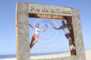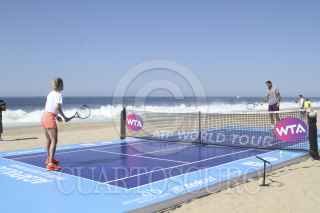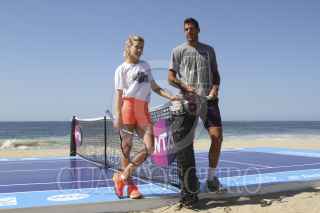 ACAPULCO, GUERRERO, 27FEBRERO2017.- El doble medallista Juan Martín del Potro y la jugadora canadiense Eugene Bouchard, dieron un partido de exhibición de 20 minutos en la playa de Pie de la Cuesta, previó a la inauguración del Abierto de Tenis Mexicano. FOTO: BERNANDINO HERNÁNDEZ /CUARTOSCURO.COM