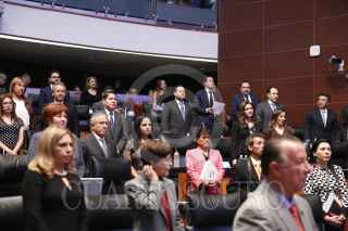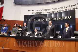 CIUDAD DE MÉXICO, 28FEBRERO2017.- Luis Videgaray, secretario de Relaciones Exteriores (SRE) toma protesta previo al inició de su comparecencia ante el pleno del Senado de la República, y en la cual abordó la relación México-Estados Unidos. FOTO: CUARTOSCURO.COM