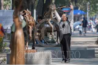 CIUDAD DE MÉXICO, 28FEBRERO2017.- 20 esculturas de Salvador Dalí fueron montadas sobre Paseo de la Reforma en la acera de la Museo Nacional de Antropología. Las obras pertenecen al Museo Soumaya, propiedad del empresario Carlos Slim y estarán hasta mediados del mes de abril. FOTO: DIEGO SIMÓN SÁNCHEZ /CUARTOSCURO.COM