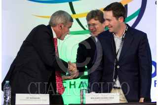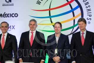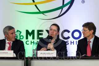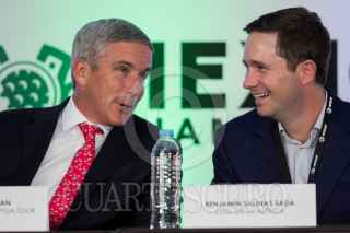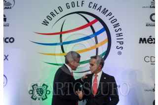 CIUDAD DE MÉXICO, 01MARZO2017.- Jay Monahan, comisionado del PGA Tour, y Miguel Ángel Mancera, jefe de gobierno de la Ciudad de México, durante la conferencia de prensa para dar a conocer detalles y cifras de la posible asistencia al Torneo Mundial de Golf, que inicia el día de mañana en el Club de Golf Chapultepec- FOTO: GALO CAÑAS /CUARTOSCURO.COM