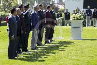 CIUDAD DE MÉXICO, 02MARZO2017.- Jay Monahan, comisionado del PGA Tour; Ricardo Salinas Pliego, director general de Tv Azteca; Benjamin Salinas Sada, director ejecutivo de Tv Azteca, y Esteban Toledo, jugador mexicano de Golf, encabezaron la inauguración del Campeonato Mundial de Golf en el Club de Golf Chapultepec. FOTO: GALO CAÑAS /CUARTOSCURO.COM