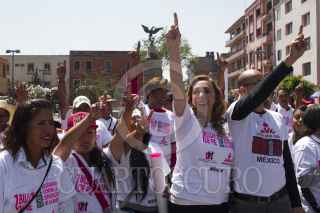 CIUDAD DE MÉXICO, 02MARZO2017.- Rosy Orozco, quien encabeza el movimiento "1 billón de pie en solidaridad contra la explotación de la mujer", encabezó un baile en la Plaza Juan José Baz para pedir la erradicación de la prostitución en las calles de la colonia Merced, que pertenecen a delegación Cuauhtémoc. FOTO: MOISÉS PABLO /CUARTOSCURO.COM