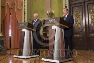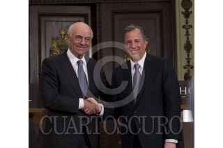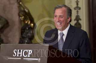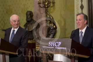 CIUDAD DE MÉXICO, 02MARZO2017.- Francisco González Rodríguez, presidente de grupo BBVA Bancomer, y José Antonio Meade Kuribreña, secretario de Hacienda y Crédito Público, ofrecieron un mensaje a medios para destacar la importancia de la cooperación entre ambas organizaciones. González Rodríguez expresó que no se encuentra preocupado por las políticas proteccionistas del presidente estadounidense, Donald Trump. FOTO: GALO CAÑAS /CUARTOSCURO. COM