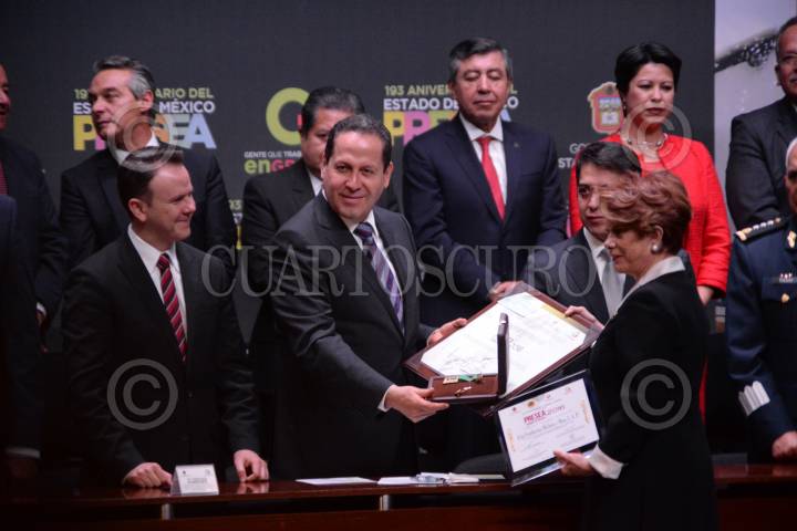 TOLUCA, ESTADO DE MÉXICO, 02MARZO2017.- Francisco Guzmán Ortiz, Jefe de la Oficina de la Presidencia de la República, y Eruviel Ávila, gobernador de la entidad, entregaron la Presea "Estado de México" 2016. FOTO: ARTEMIO GUERRA BAZ / CLAROSCURO.COM