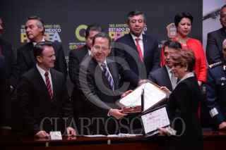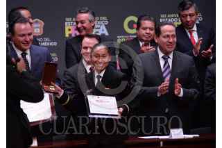 TOLUCA, ESTADO DE MÉXICO, 02MARZO2017.- Francisco Guzmán Ortiz, Jefe de la Oficina de la Presidencia de la República, y Eruviel Ávila, gobernador de la entidad, entregaron la Presea "Estado de México" 2016. FOTO: ARTEMIO GUERRA BAZ / CLAROSCURO.COM