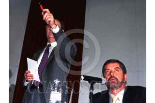 Juan Ramón de la Fuente, rector de la UNAM, y el consejero Enrique del Val Blanco, contaron los votos en donde se aprobó el proyecto de crear la maestría en docencia de educación media superior en la sesión ordinaria del consejo universitario. FOTO: Iván Stephens/CUARTOSCURO.COM
