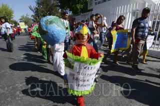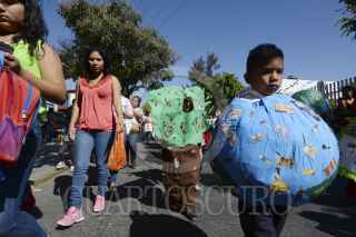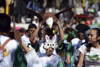 CHILPANCINGO, GUERRERO, 03MARZO2017.- Profesores y estudiantes de diferentes planteles educativos, vestidos de diferentes especies de fauna y flora, llevaron a cabo un recorrido por la principal avenidahasta llegar al zócalo, ahí llevaron a cabo un evento para concientizar a la sociedad de proteger la naturaleza en el marco del Día mundial de la vida silvestre. FOTO: JOSÉ I. HERNÁNDEZ / CUARTOSCURO.COM
