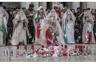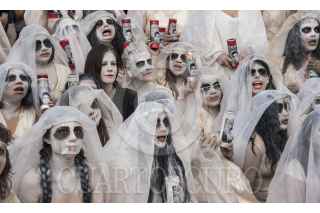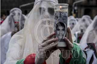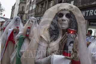 CIUDAD DE MÉXICO, 04MARZO2017.- La artista y activista Jil Love Revolution, organizó un performance que incluyó a 43 "lloronas", mujeres disfrazadas que representaron a cada una de las madres de los normalistas de Ayotzinapa desaparecidos. El acto se desarrolló del Zócalo a la explanada del Palacio de Bellas Artes y contó con la participación de la activista Julia Klug. FOTO: TERCERO DÍAZ /CUARTOSCURO.COM