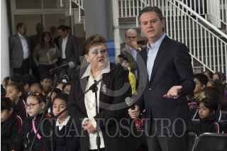 CIUDAD DE MÉXICO., 06MARZO2017.- Aurelio Nuño Mayer, Secretario de Educación Pública, visitó la Escuela Primaria Francisco Giner, donde realizó los honores a la bandera y llevó a cabo un recorrido por las instalaciones. Además, la corredora de autos Mara Reyes, estuvo participó dando una charla motivacional en el marco del Día Internacional de la Mujer, próximo a celebrarse el 8 de marzo. FOTO: TERCERO DÍAZ /CUARTOSCURO.COM