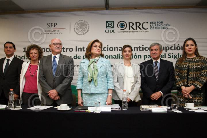 CIUDAD DE MÉXICO, 06MARZO2017.- Juan Manuel Portal Martínez, auditor superior de la Federación, Ximena Puente de la Mora, titular del INAI, Y Jacqueline Peschard Mariscal, presidenta del Comité de Participación Ciudadana, durante el 1er Encuentro Internacional Anticorrupción: "Hacia una nueva ley de profesionalización para el siglo XXI", en la Flacso. FOTO: ISAAC ESQUIVEL /CUARTOSCURO.COM