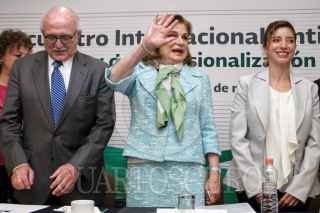 CIUDAD DE MÉXICO, 06MARZO2017.- Juan Manuel Portal Martínez, auditor superior de la Federación, Ximena Puente de la Mora, titular del INAI, Y Jacqueline Peschard Mariscal, presidenta del Comité de Participación Ciudadana, durante el 1er Encuentro Internacional Anticorrupción: "Hacia una nueva ley de profesionalización para el siglo XXI", en la Flacso. FOTO: ISAAC ESQUIVEL /CUARTOSCURO.COM