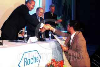 El Dr. Enrique Ruelas sub secretario de innovacion y calidad de la S.S , el Dr. Jorge Rosenkranz y el Dr. Manuel Mendez durante la premiación anual de investigación médica Dr. Jorge Rosenkranz del Grupo Roche Syntex. FOTO: Ricardo Hernández/CUARTOSCURO.COM