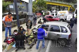 CIUDAD DE MÉXICO, 06MARZO2017.- Cuatro vehículos participaron un choque con un pipa de gas, en el kilómetro 22 de la autopista México-Cuernavaca. Una mujer y sus dos hijos pequeños que viajaban en un Chevy resultaron heridos. FOTO: ARMANDO MONROY /CUARTOSCURO.COM